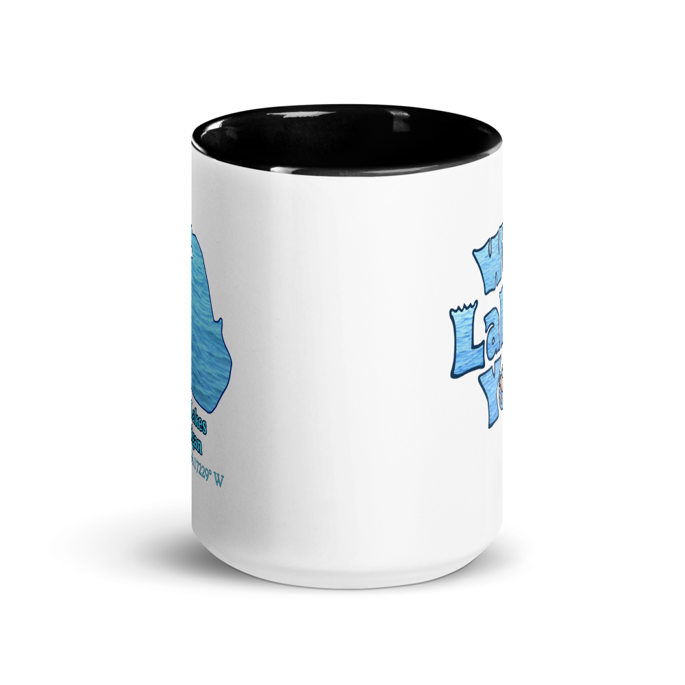This 15 oz ceramic mug has a colorful rim and handle with Twin Lakes and the playful "We Lake You" message on the other side. Its durable ceramic material ensures long-lasting use, and the print retains its quality and luster when used in both microwaves and the dishwasher. 15 oz Mug Dimensions: 4.69″ (11.9 cm) in height, 3.35″ (8.5 cm) in diameter.