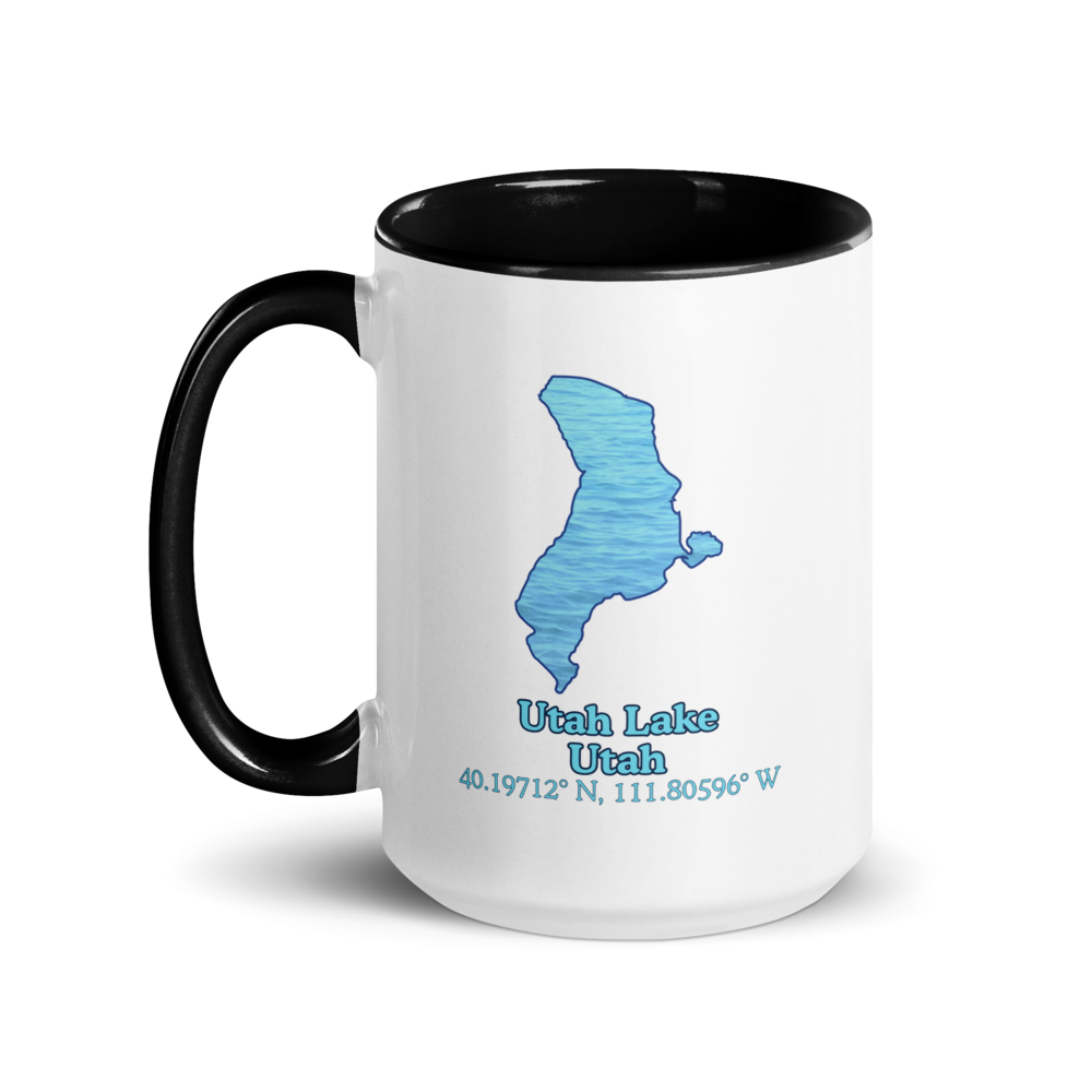 This 15 oz ceramic mug has a colorful rim and handle with Utah Lake and the playful "We Lake You" message on the other side. Its durable ceramic material ensures long-lasting use, and the print retains its quality and luster when used in both microwaves and the dishwasher. 15 oz Mug Dimensions: 4.69″ (11.9 cm) in height, 3.35″ (8.5 cm) in diameter.
