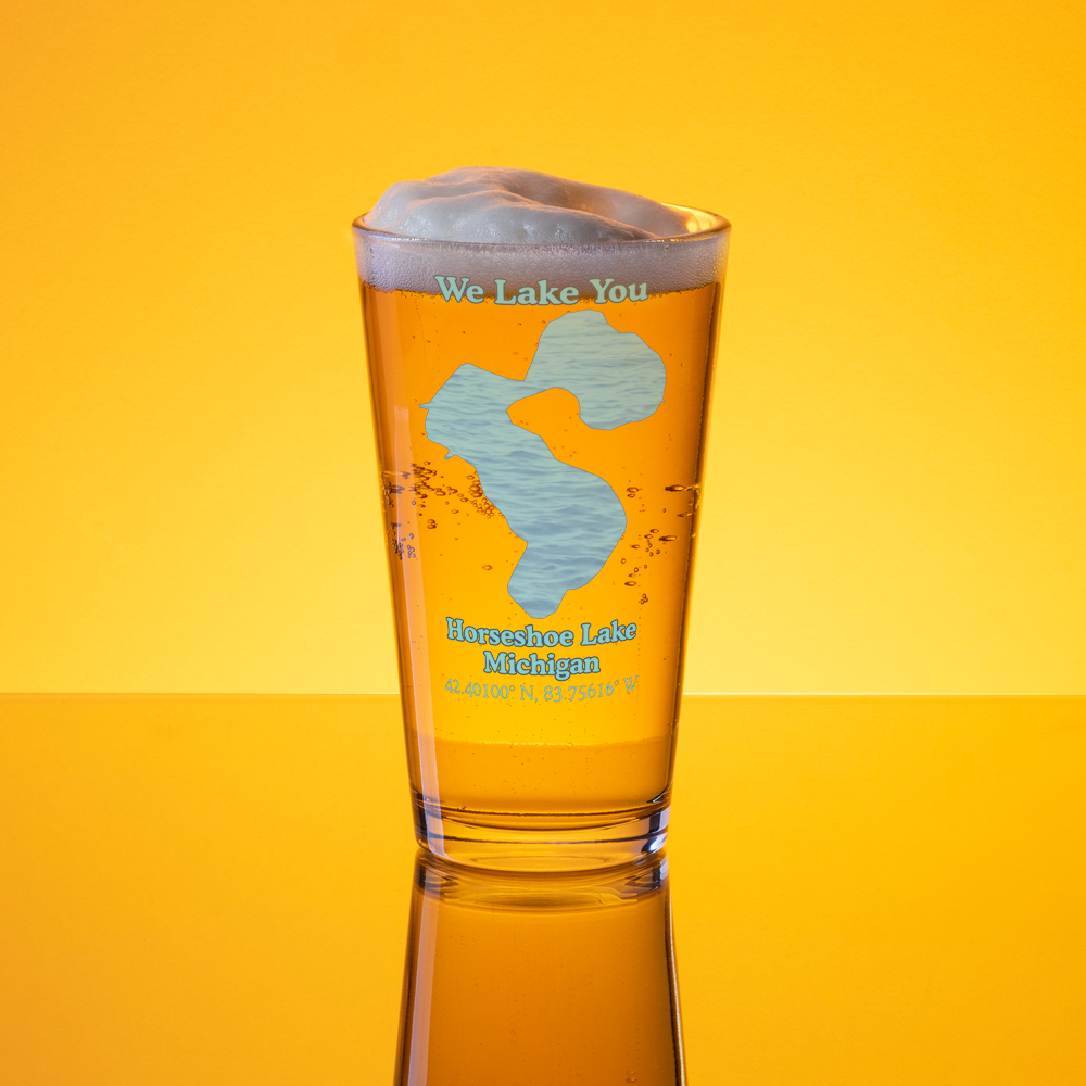 You can almost taste your beverage of choice in this 16 oz pint glass featuring Horseshoe Lake with the "We Lake You" message on one side. It is a durable, high-quality addition to any glassware collection. Perfect gift for lake house guests to show their appreciation for the invite. Hand-washing recommended to insure the high-quality raised artwork is preserved for a long time. Dishwasher is OK now and then, but do not put glass in microwave. Note: The bubbles in the photo are from the beverage - not part of the design.