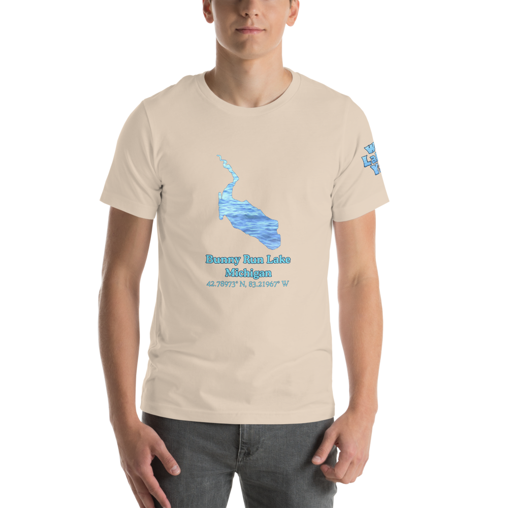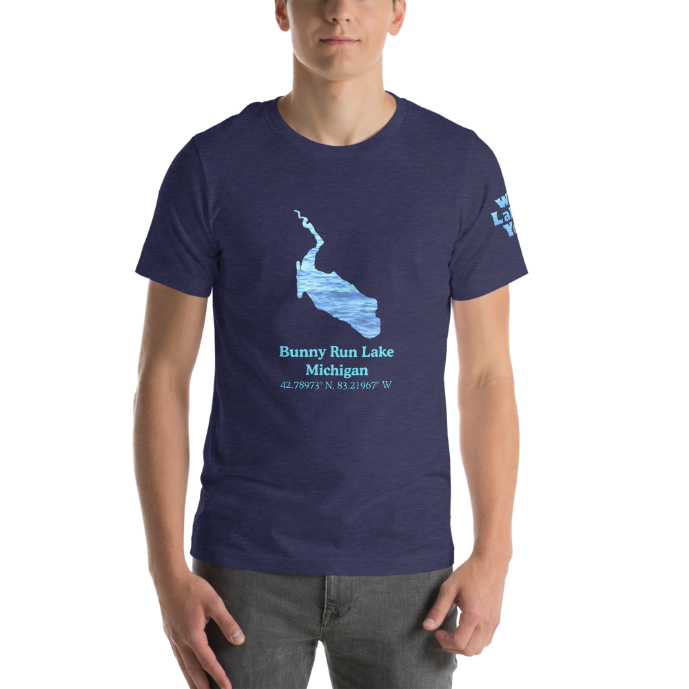 This premium t-shirt will get them staring at the Bunny Run Lake design on the front, and your toned arms next to the "We Lake You" logo on the sleeve. This soft and lightweight t-shirt has just the right amount of stretch. You'll be comfortable all day in 100% heirloom combed and ring-spun cotton for solid colors. Heather colors require a blend of cotton/polyester.