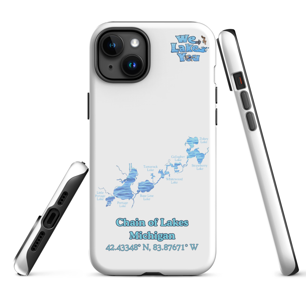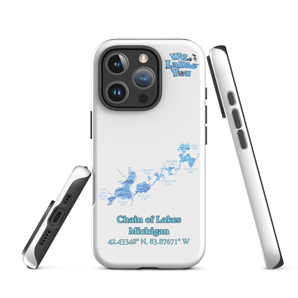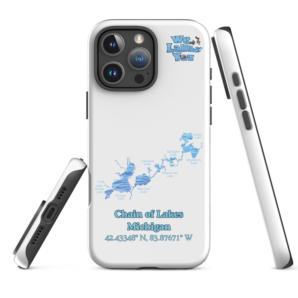 Elevate your mirror selfies with a touch of Chain of Lakes magic using our custom iPhone cases. Safeguard your precious device in style while showcasing the beauty of Chain of Lakes with our durable, dual-layered case. Polycarbonate outer shell and a thermoplastic Polyurethane TPU inner liner. Other features: Precisely aligned port openings and is induction charging compatible.