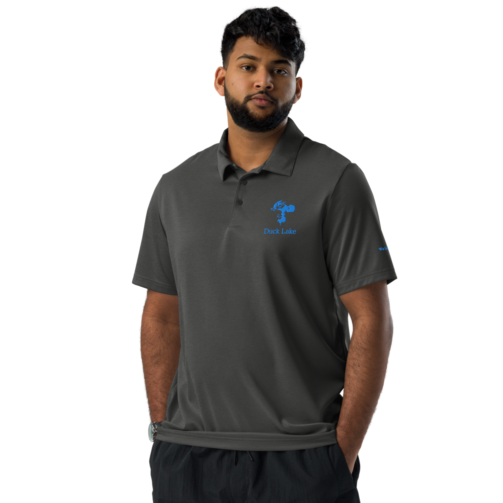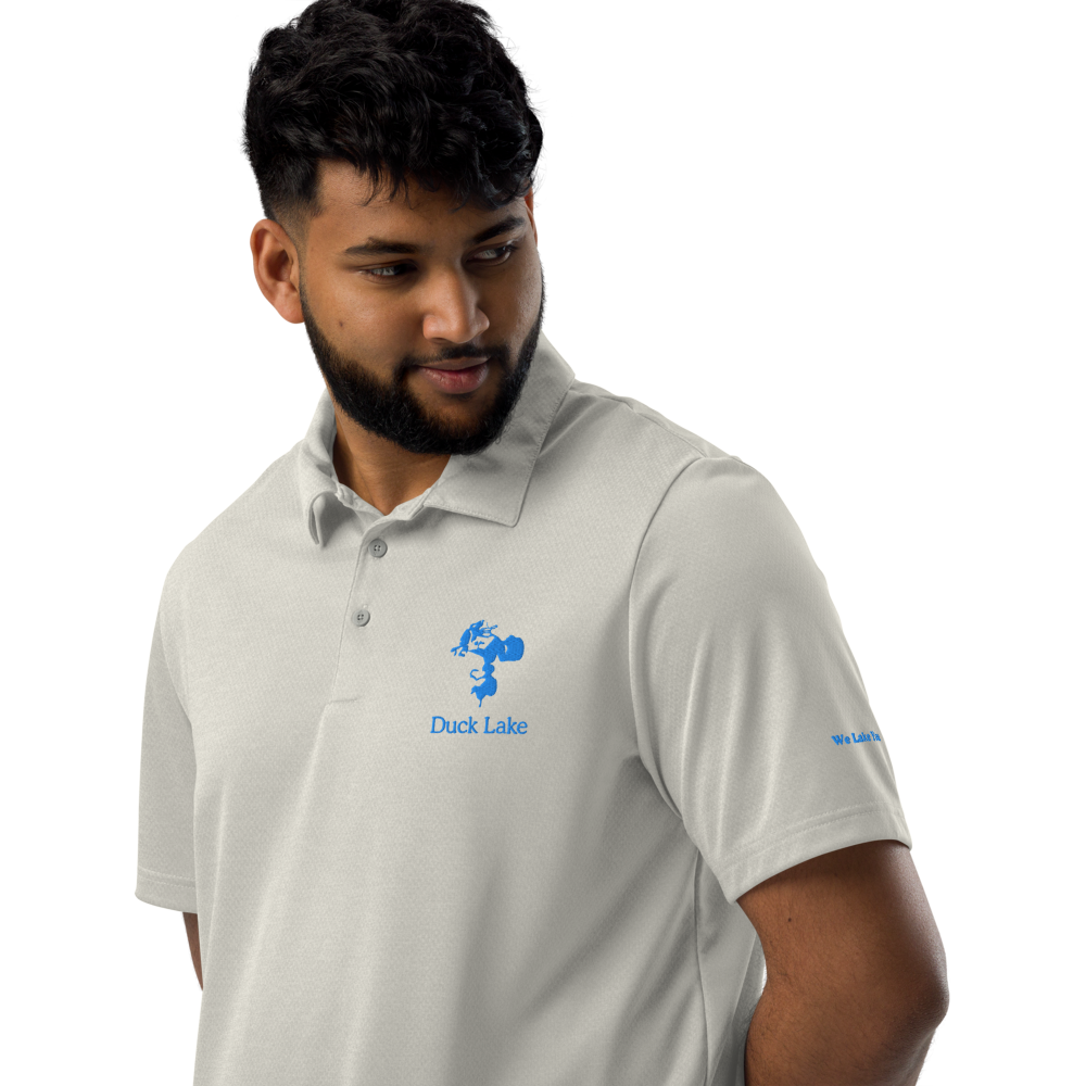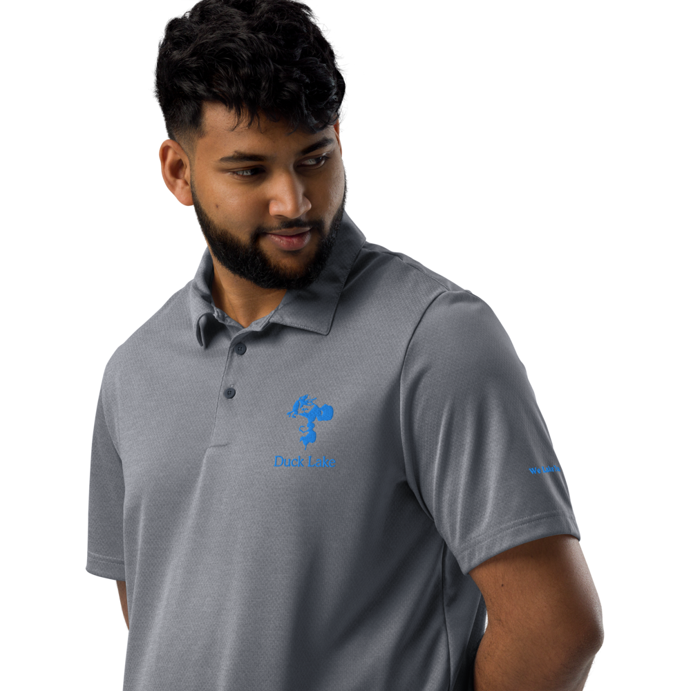 This Adidas polo is made of 100% high-quality recycled polyester with a space-dyed pattern. It features an embroidered design of Duck Lake on the front and the "We Lake You" message on the left sleeve. It has a comfortable regular fit that moves with you throughout the day. It has a 3-button placket and the adidas logo on the right sleeve gives it a touch of authenticity. With its timeless design and attention to detail, this polo will become a wardrobe favorite.