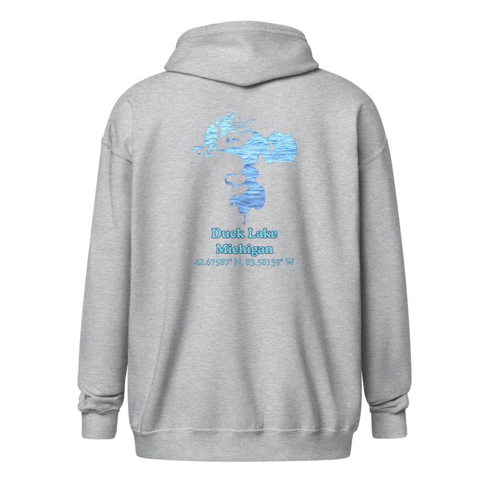 This classic zip-up hoodie has Duck Lake featured on back and the We Lake You logo on front. It is a medium weight all-season favorite that allows you to go where the climate suits your clothes. Perfect for eco-conscious customers, made with organic cotton/recycled polyester blend. Designed with style and comfort, it’s made from soft fleece inside and outside, with a sturdy metal zipper, convenient front pockets, and a hood with color-matched drawstrings. Made with 50% cotton, 50% polyester.