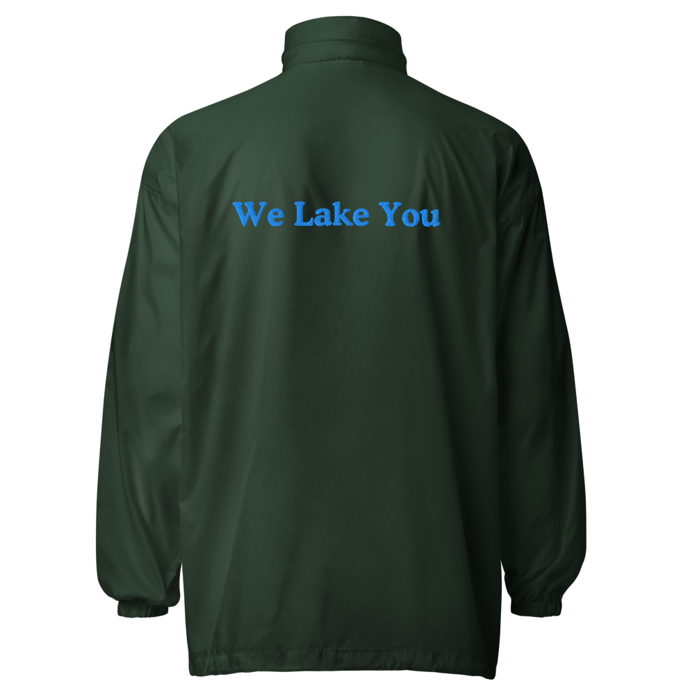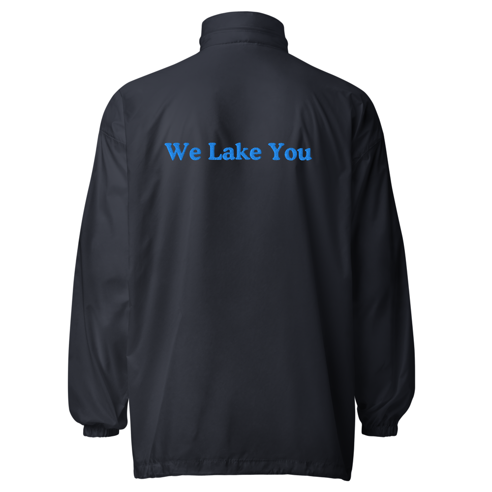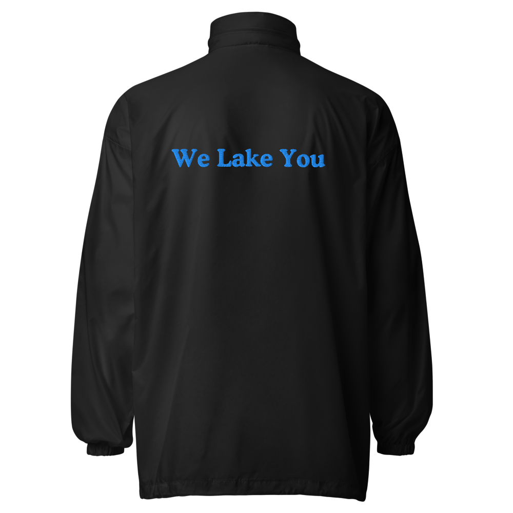 This sporty unisex windbreaker has embroidered artwork of Jordan Lake on front and We Lake You on back. It's lightweight, durable, and water-repellent with a full zipper and elasticated cuffs for a snug fit. Two zipped pockets help you store your essentials while on the move. There is a hood with string closures that neatly tucks away in a zipped pocket around the neck. This classic windbreaker will keep you both fashionable and protected on all your adventures. The fabric is made of 100% polyamide, OEKO-TEX Standard 100 certified and PETA-Approved Vegan