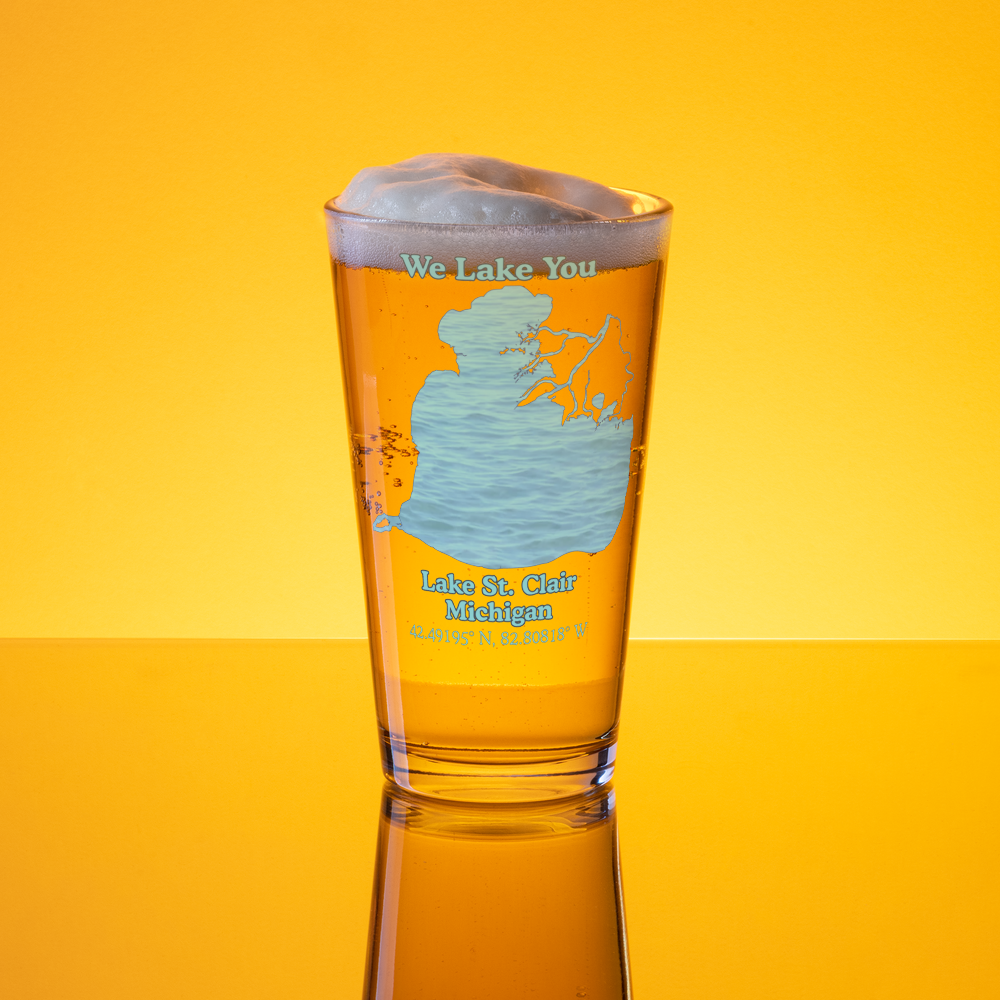 You can almost taste your beverage of choice in this 16 oz pint glass featuring Lake St. Clair with the "We Lake You" message on one side. It is a durable, high-quality addition to any glassware collection. Perfect gift for lake house guests to show their appreciation for the invite. Hand-washing recommended to insure the high-quality raised artwork is preserved for a long time. Dishwasher is OK now and then, but do not put glass in microwave. Note: The bubbles in the photo are from the beverage - not part of the design.