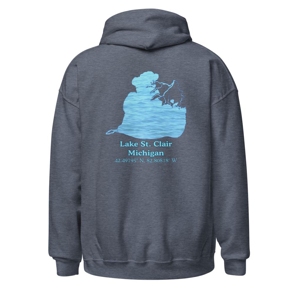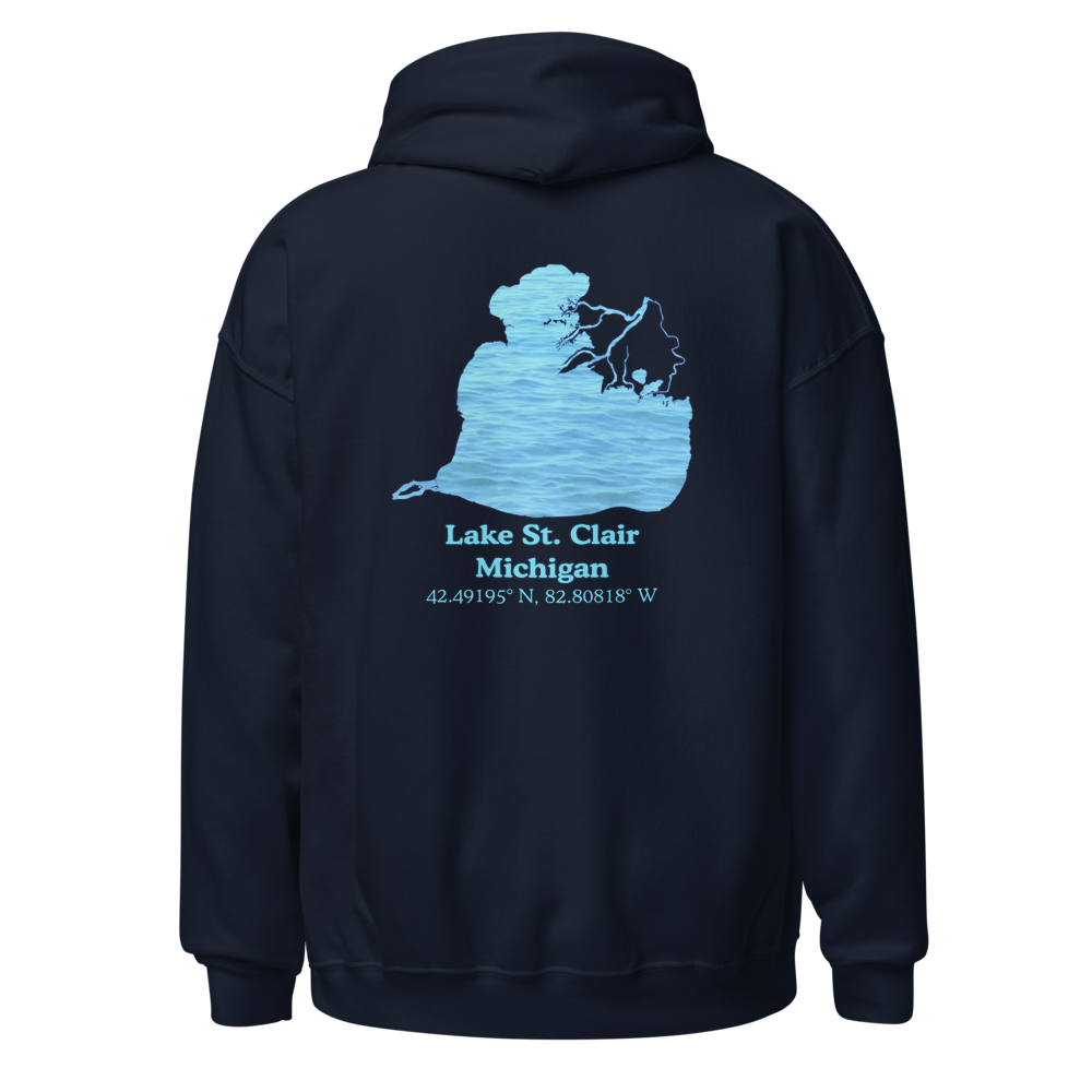 Become the lake gangster that lives within us all, with this classic hoodie that features Lake St. Clair on back and the 'We Lake You' logo on front. With a large front pouch pocket and drawstrings in matching color, this pre-shrunk fleece knit has a soft feel with reduced pilling. Snuggle up in supreme comfort with a double-lined hood, and double-needle stitching at shoulder, armhole, neck, waistband and cuffs.