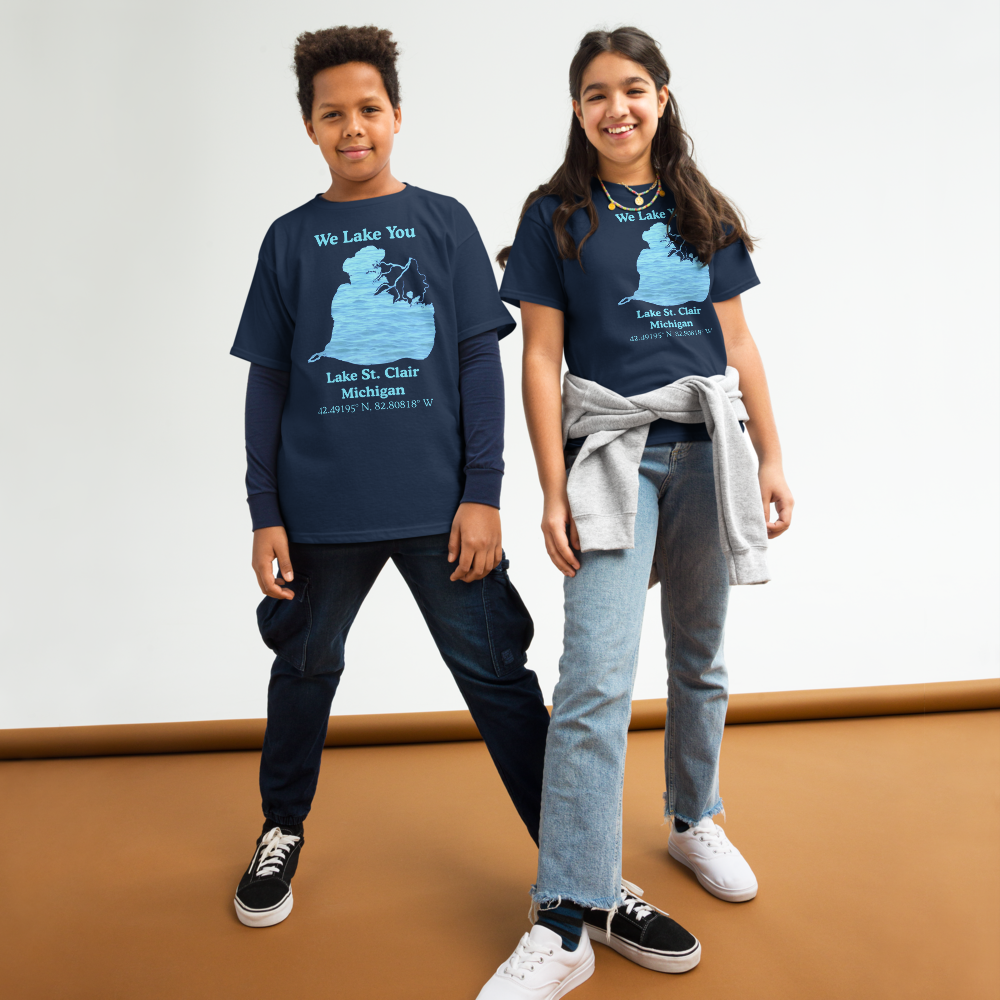 Kids love their lake even more than you do. Get them this classic fit t-shirt so they can show off Lake St. Clair. Made from 100% cotton, this shirt is soft, breathable and pre-shrunk for a great fit that lasts. It features a taped-neck and shoulders for added strength as well as a tear-away tag for ultimate comfort. Plus it's made with OEKO-TEX certified low-impact dyes, so it's as kind to the environment as it is to your kids.