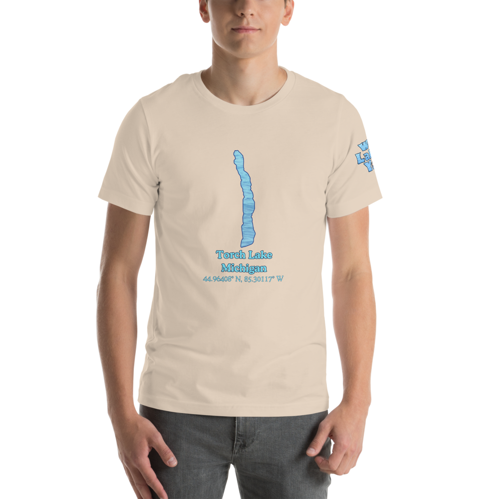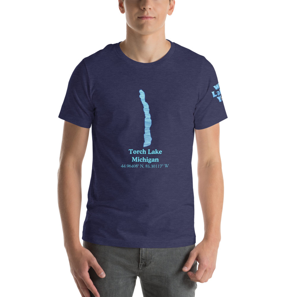 This premium t-shirt will get them staring at the Torch Lake design on the front, and your toned arms next to the "We Lake You" logo on the sleeve. This soft and lightweight t-shirt has just the right amount of stretch. You'll be comfortable all day in 100% heirloom combed and ring-spun cotton for solid colors. Heather colors require a blend of cotton/polyester.