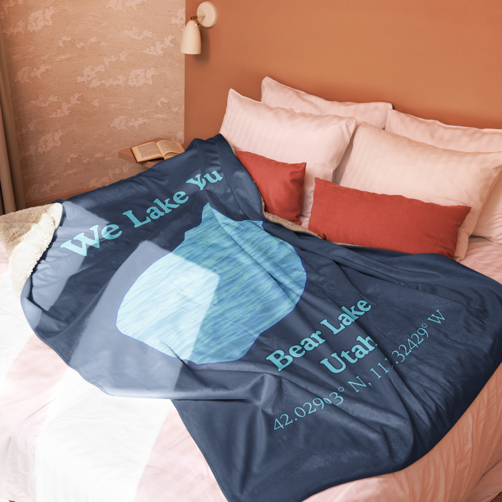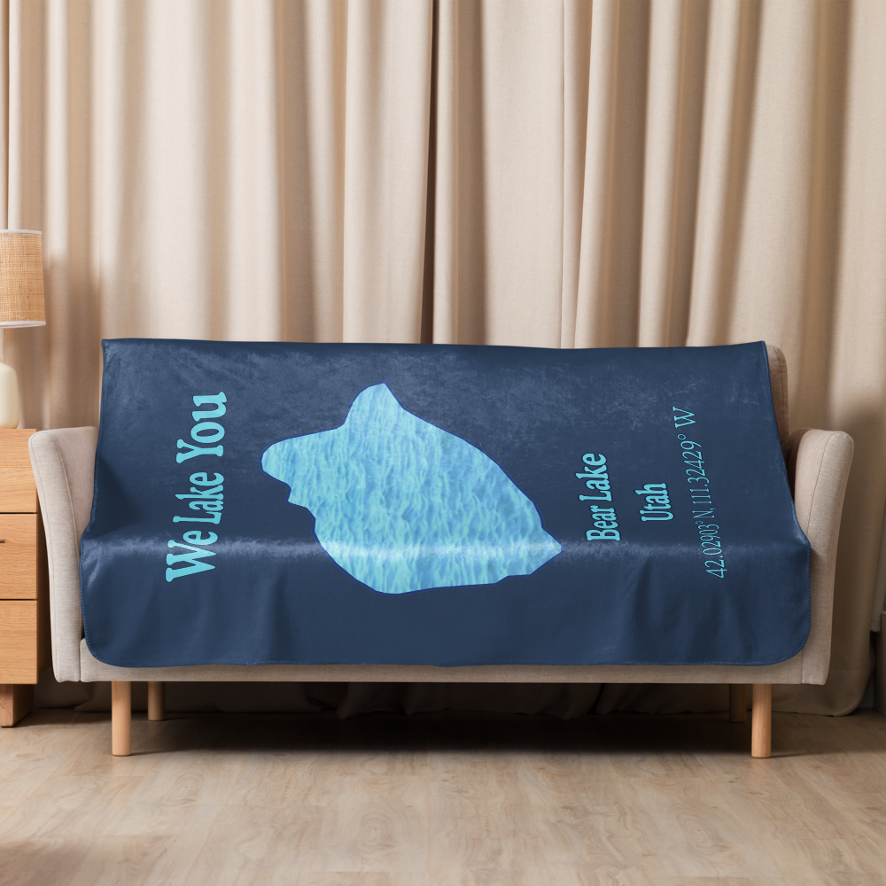 This exquisite sherpa blanket features a Bear Lake design with a welcoming 'We Lake You' declaration. It combines a plushie feel with exceptional softness - making it perfect for lounging, snuggling or styling your guest room at the lake house. Available in two sizes: 50" x 60" (127 x 153 cm) and 60" x 80" (153 x 203 cm). Fabric is 100% polyester (51.5% surface fabric, 48.5% sherpa fabric)