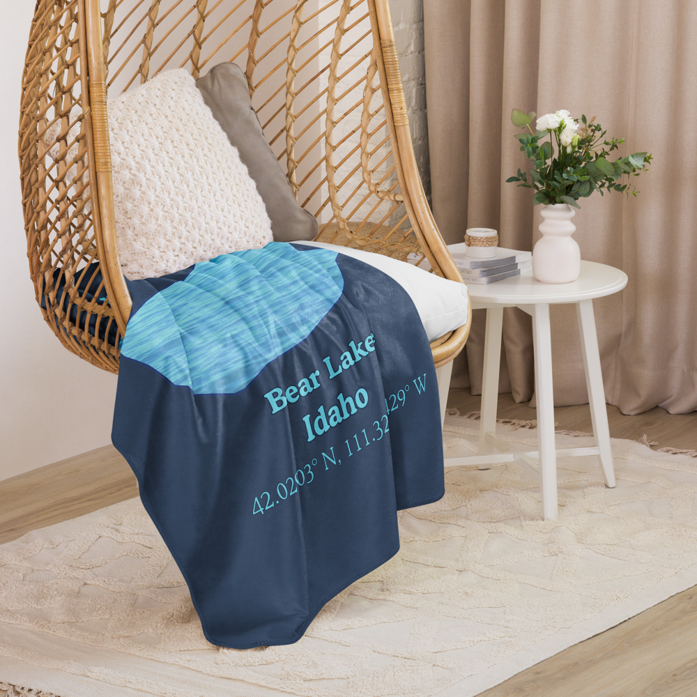 This exquisite sherpa blanket features a Bear Lake design with a welcoming 'We Lake You' declaration. It combines a plushie feel with exceptional softness - making it perfect for lounging, snuggling or styling your guest room at the lake house.  Available in two sizes:  50" x 60" (127 x 153 cm) and 60" x 80" (153 x 203 cm).  Fabric is 100% polyester (51.5% surface fabric, 48.5% sherpa fabric)