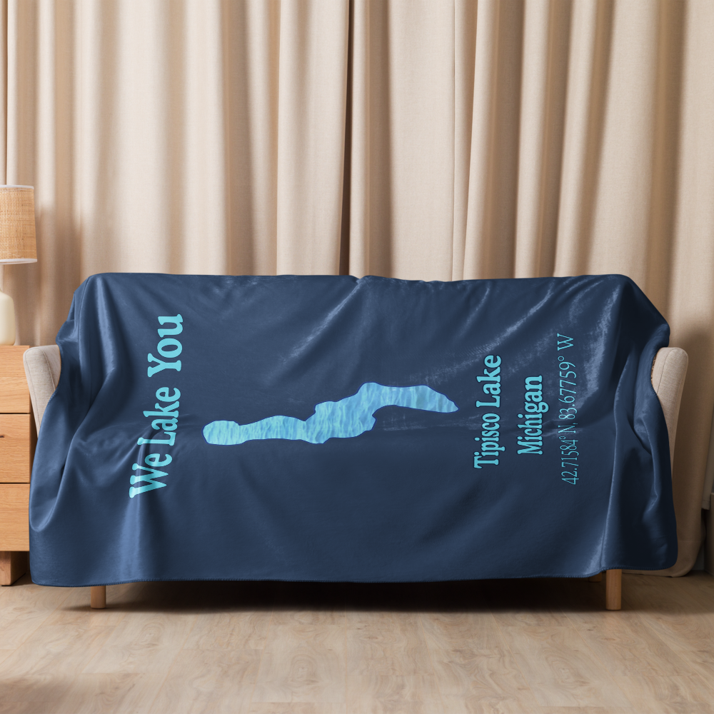 This exquisite sherpa blanket features a Tipisco Lake design with a welcoming 'We Lake You' declaration. It combines a plushie feel with exceptional softness - making it perfect for lounging, snuggling or styling your guest room at the lake house. Available in two sizes: 50" x 60" (127 x 153 cm) and 60" x 80" (153 x 203 cm). Fabric is 100% polyester (51.5% surface fabric, 48.5% sherpa fabric)