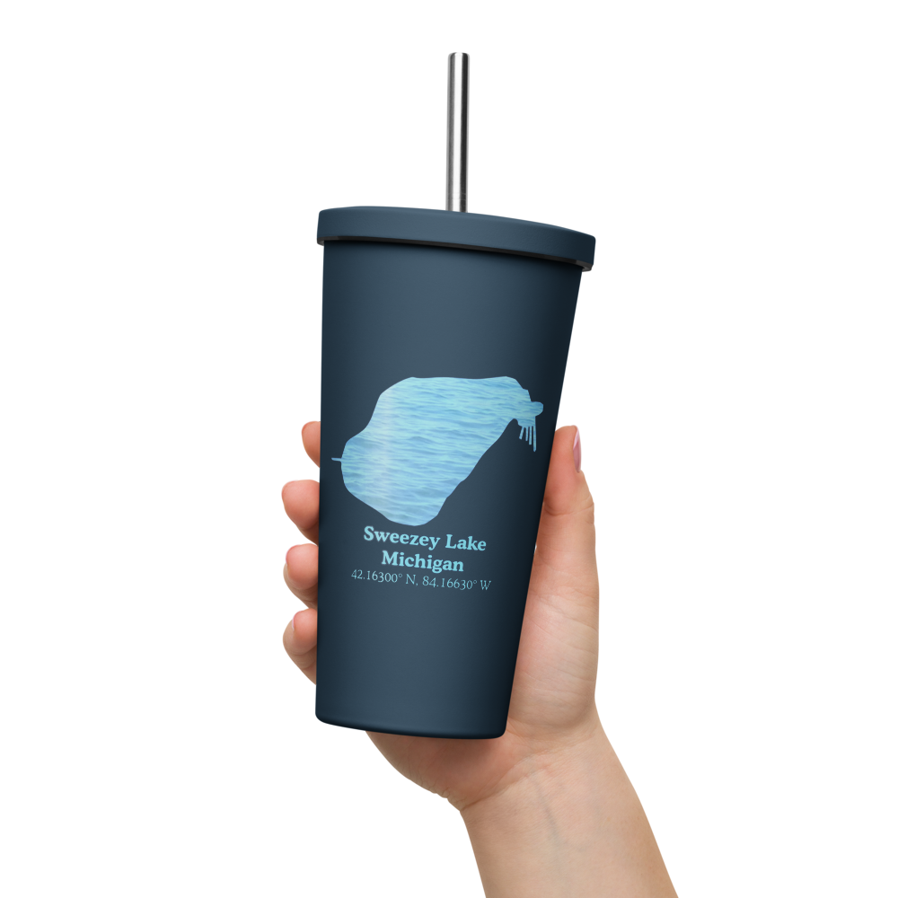Sweezey Lake 20 oz. Insulated Stainless Steel Tumbler & Metal Straw