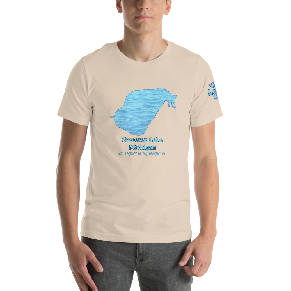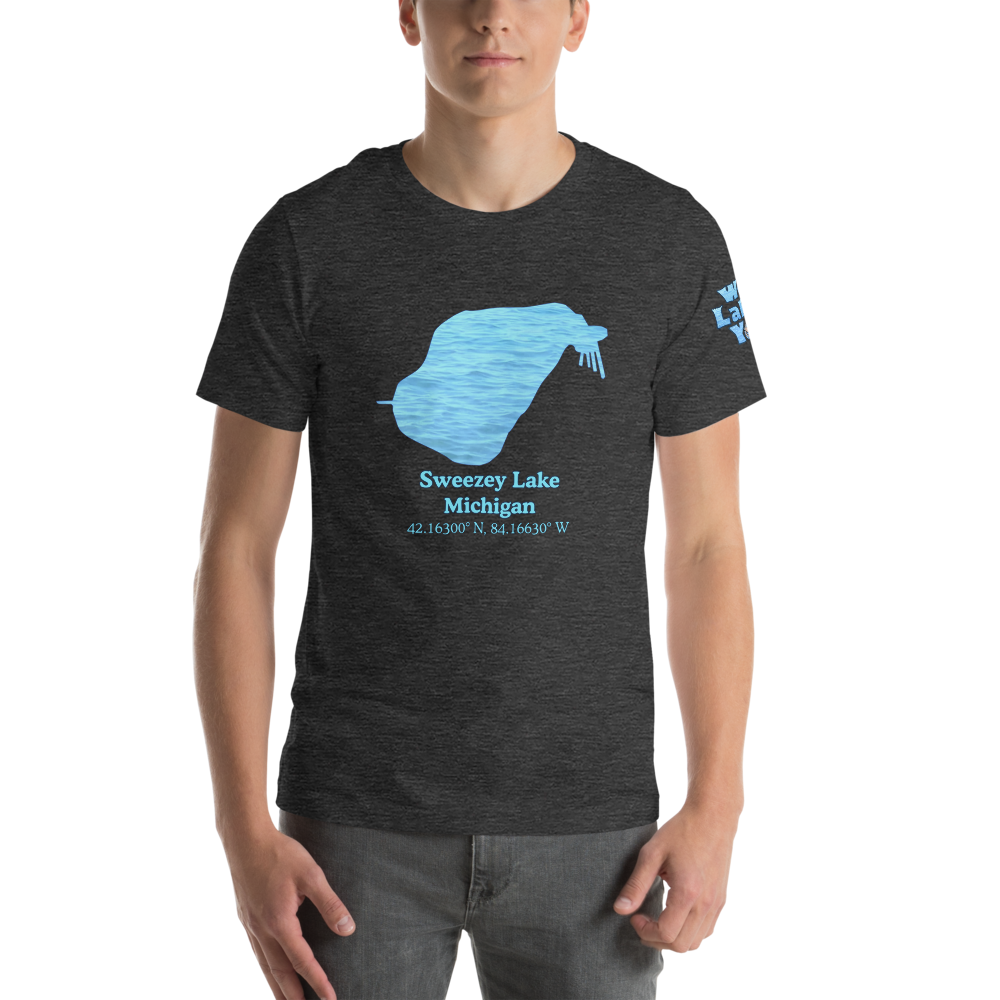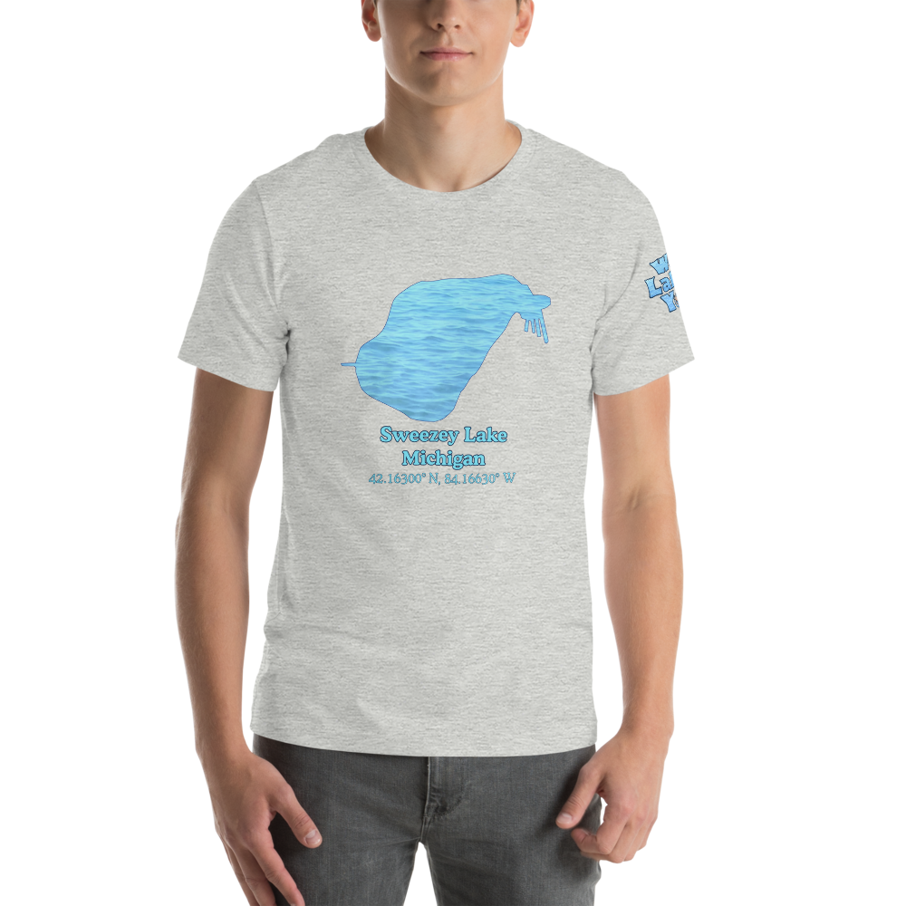 This premium t-shirt will get them staring at the Sweezey Lake design on the front, and your toned arms next to the "We Lake You" logo on the sleeve. This soft and lightweight t-shirt has just the right amount of stretch. You'll be comfortable all day in 100% heirloom combed and ring-spun cotton for solid colors. Heather colors require a blend of cotton/polyester.