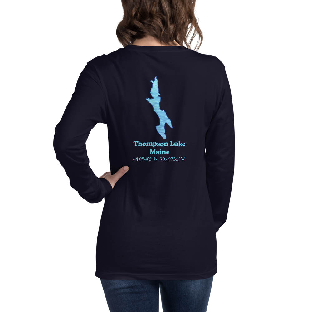Now when someone is checking out your backside - they'll know exactly where to find you. Slip into this soft long-sleeved cotton t-shirt featuring a bold design of Thompson Lake on the back, and the "We Lake You" message on the front.