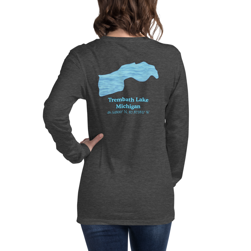 Now when someone is checking out your backside - they'll know exactly where to find you. Slip into this soft long-sleeved cotton t-shirt featuring a bold design of Trembath Lake on the back, and the "We Lake You" message on the front.