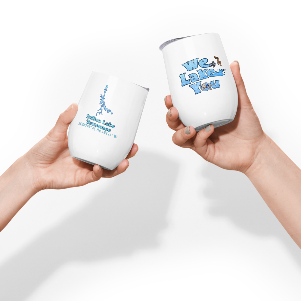 Even if wine isn’t your cup of tea, this stainless steel 12 oz wine tumbler will keep all of your beverages fresh and at just the right temperature. Tellico Lake is featured on one side and the whimsical "We Lake You" logo is on the other. Plus the double-wall vacuum seal lid will keep your summer whites safe from red wine stains!