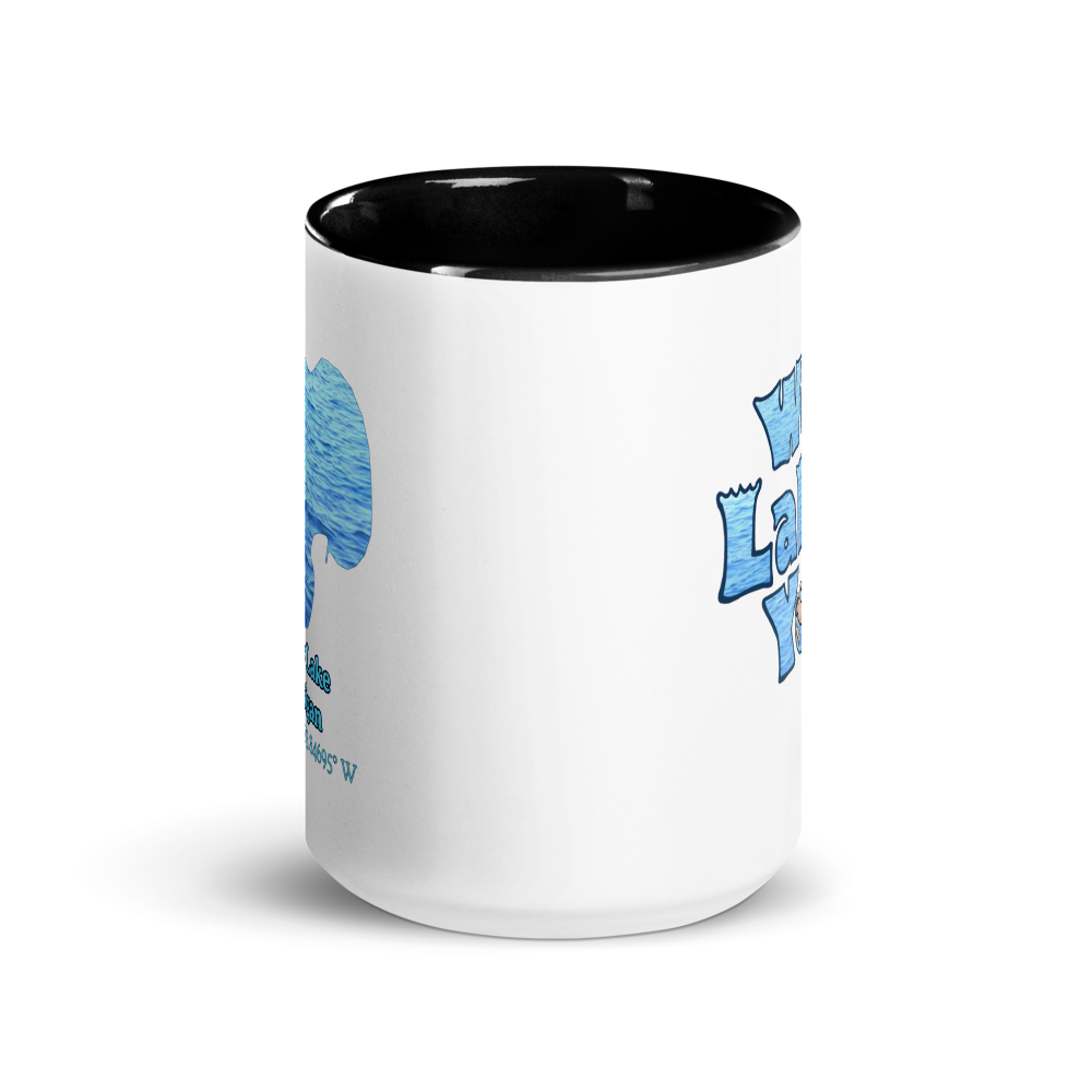 This 15 oz ceramic mug has a colorful rim and handle with Zukey Lake and the playful "We Lake You" message on the other side. Its durable ceramic material ensures long-lasting use, and the print retains its quality and luster when used in both microwaves and the dishwasher. 15 oz Mug Dimensions: 4.69″ (11.9 cm) in height, 3.35″ (8.5 cm) in diameter.
